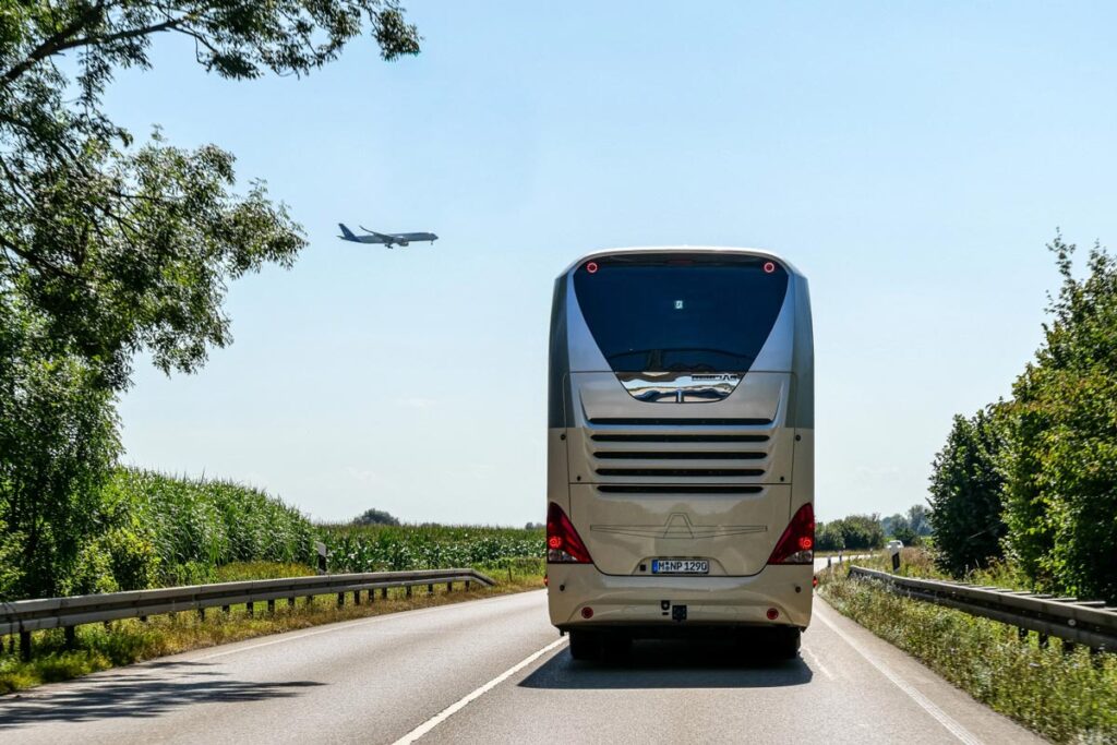 The Skyliner is not only the flagship of the NEOPLAN model range, it is also a triple champion in the important disciplines of climate protection, efficiency, and safety. Due to its high capacity, which makes maximum use of the physical limits of the vehicle concept, there is hardly a more sustainable way of traveling on the road. With up to 83 (travel version) or 96 (long-distance version “Skyliner Express”) passengers, modern MAN drive technology makes it possible to reduce CO2 emissions per passenger kilometer to well below ten grams – a top value that has also been confirmed by independent tests. With up to 11 cubic meters of luggage space, the double-decker offers more storage space than other competitors. In addition, the low-floor lower deck with space for up to two wheelchairs makes it ideal for the booming long-distance services in Europe.
