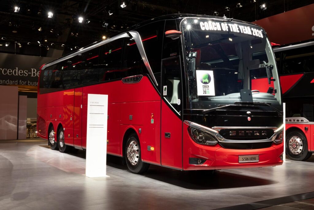 Following the Coach Euro Test 2025, 24 trade journalists from 24 countries agreed: The Setra TopClass is the new “Coach of the Year 2026”. In the test series carried out in September, an S 516 HDH from the premium model series delivered across the board. The award was presented at the European trade fair “Busworld Europe 2025”, which is taking place from October 4 to 9 in Brussels.