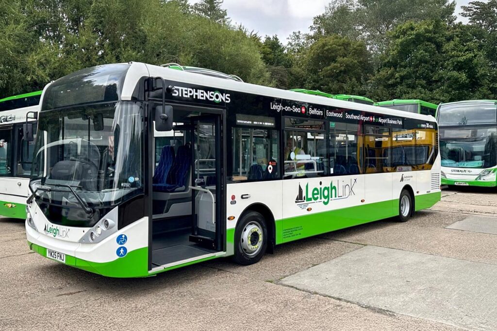 The three longer buses have 40 seats each. They have been bought specifically for use on Stephensons’ half-hourly service from Leigh-on-Sea to London Southend Airport and the Airport Business Park, which forms a north-to-south link through Southend-on-Sea without having to change in the city centre. The new service is operated in partnership with Southend City Council, with operational funding provided by the Department of Transport’s Bus Service Improvement Plan.
